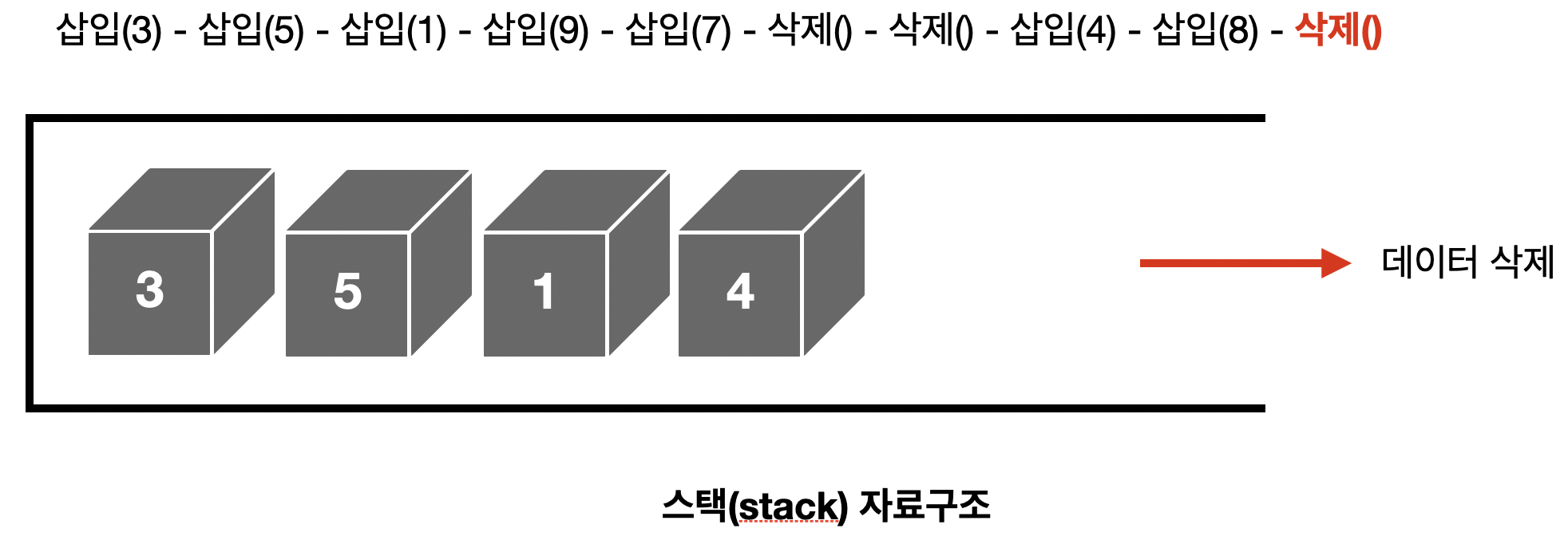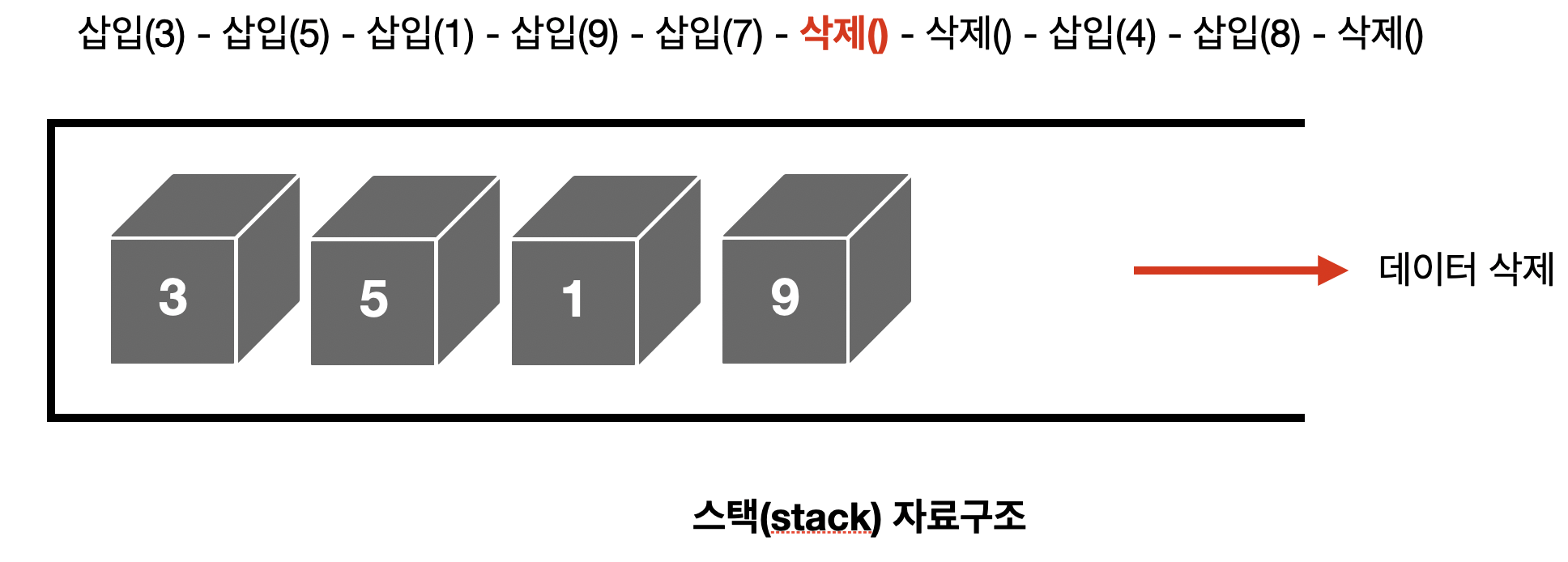 - pop 함수: 가장 최근에 삽입된 데이터 한 개를 삭제해 줍니다.