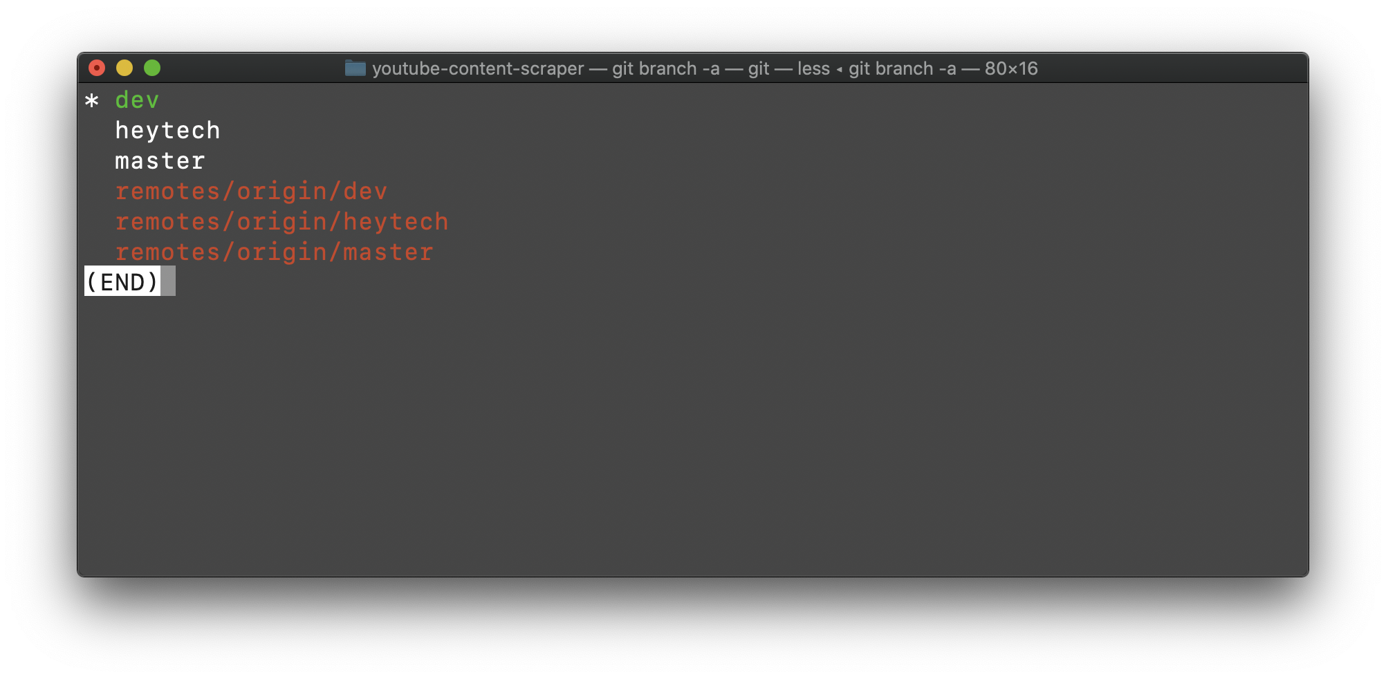 ๊ฒฐ๊ณผ๋ ์๋์ ๊ทธ๋ฆผ 1๊ณผ ๊ฐ์ด ๋ก์ปฌ๊ณผ ์๊ฒฉ ๋ธ๋์น ๋ชฉ๋ก์ด ๋ชจ๋ ์ถ๋ ฅ๋ฉ๋๋ค.