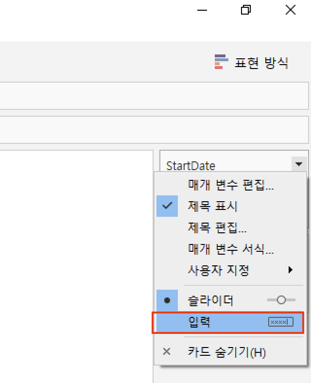 데이터 항목선반에 앞서 생성한 매개변수 각각의 이름에 마우스 우측 클릭 후 '매개 변수 표시'를 클릭합니다 (그림 11).