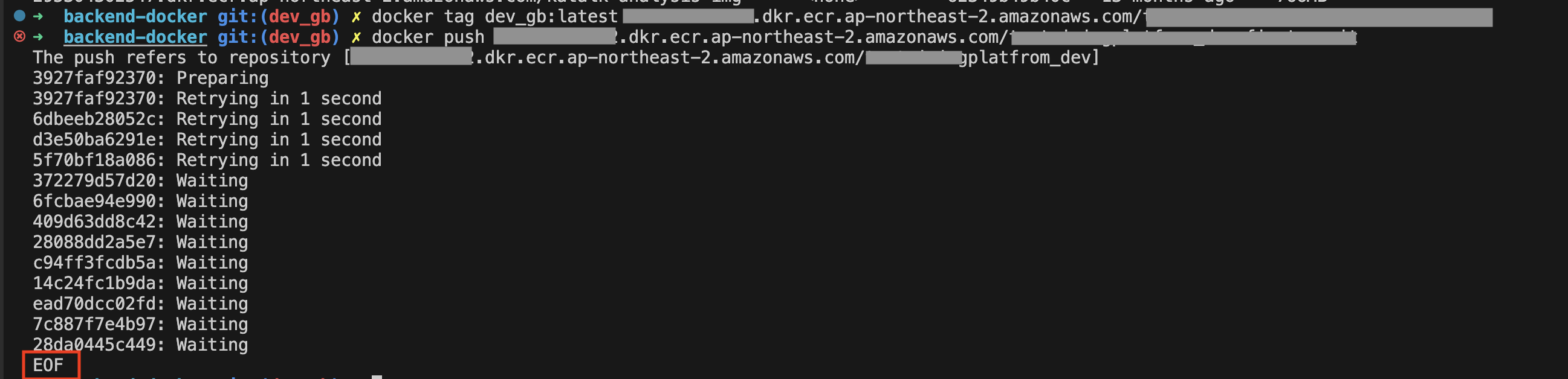 5) [AWS ECR] Docker Push EOF ์๋ฌ ํด๊ฒฐ ๋ฐฉ๋ฒ