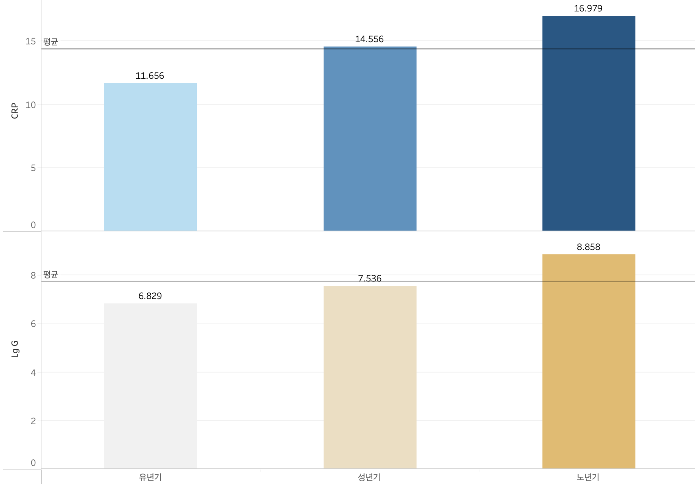 - ๋ ธ๋ ๊ธฐ ๋ CRP, lgG ์ง์๊ฐ ํ์ฐํ ๋์์ ํ์ธํ ์ ์๋ค.
